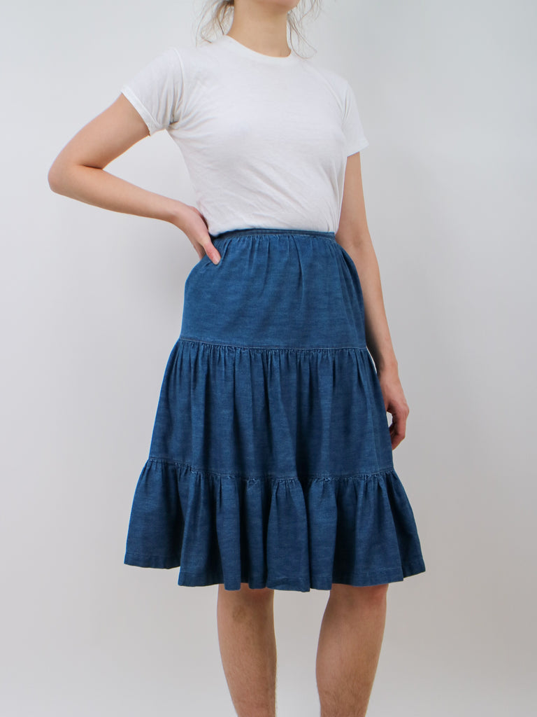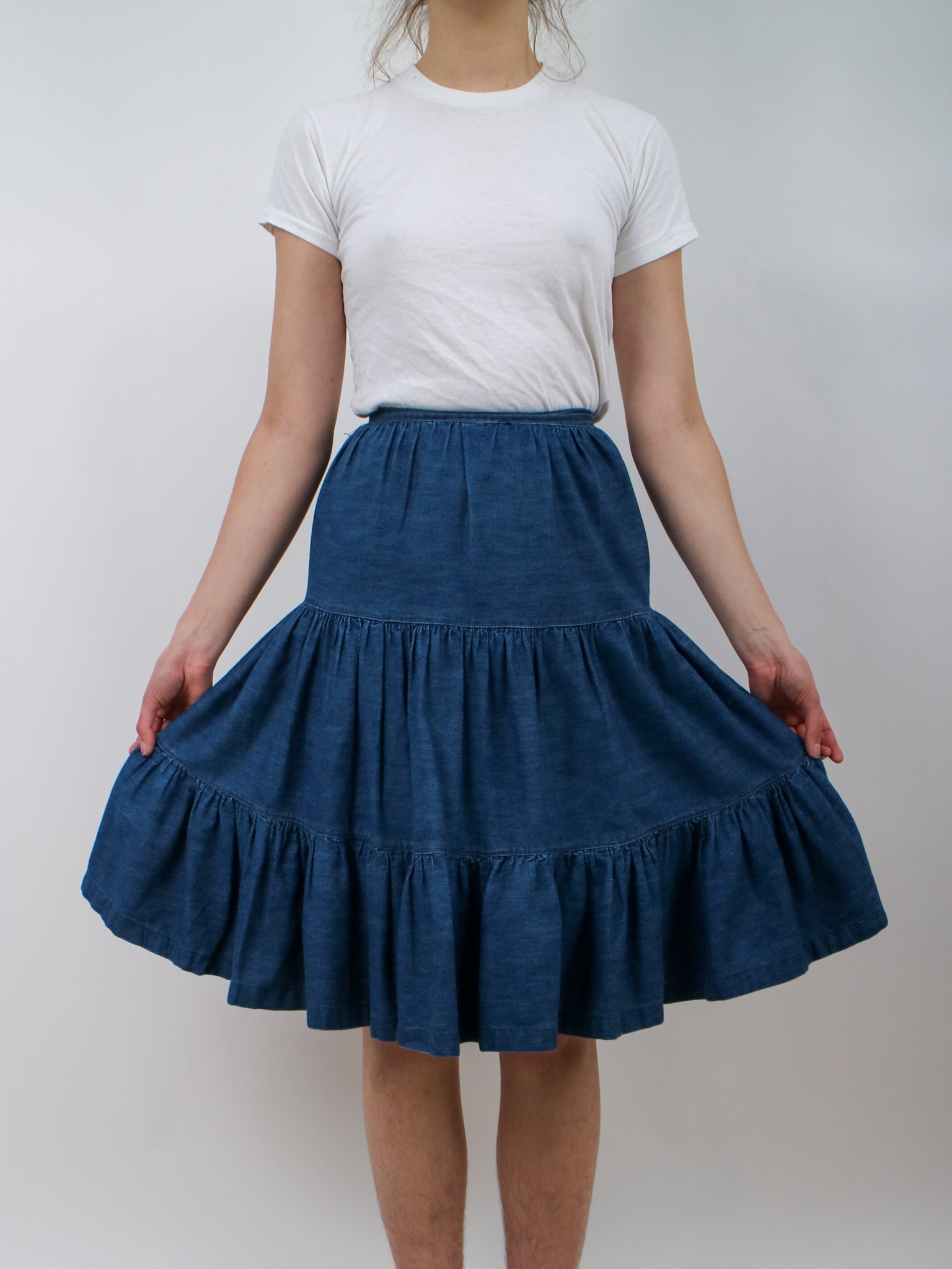 The perfect skirt for fall, this 1970s darkish denim tiered ruffled skirt is so easy to style!
