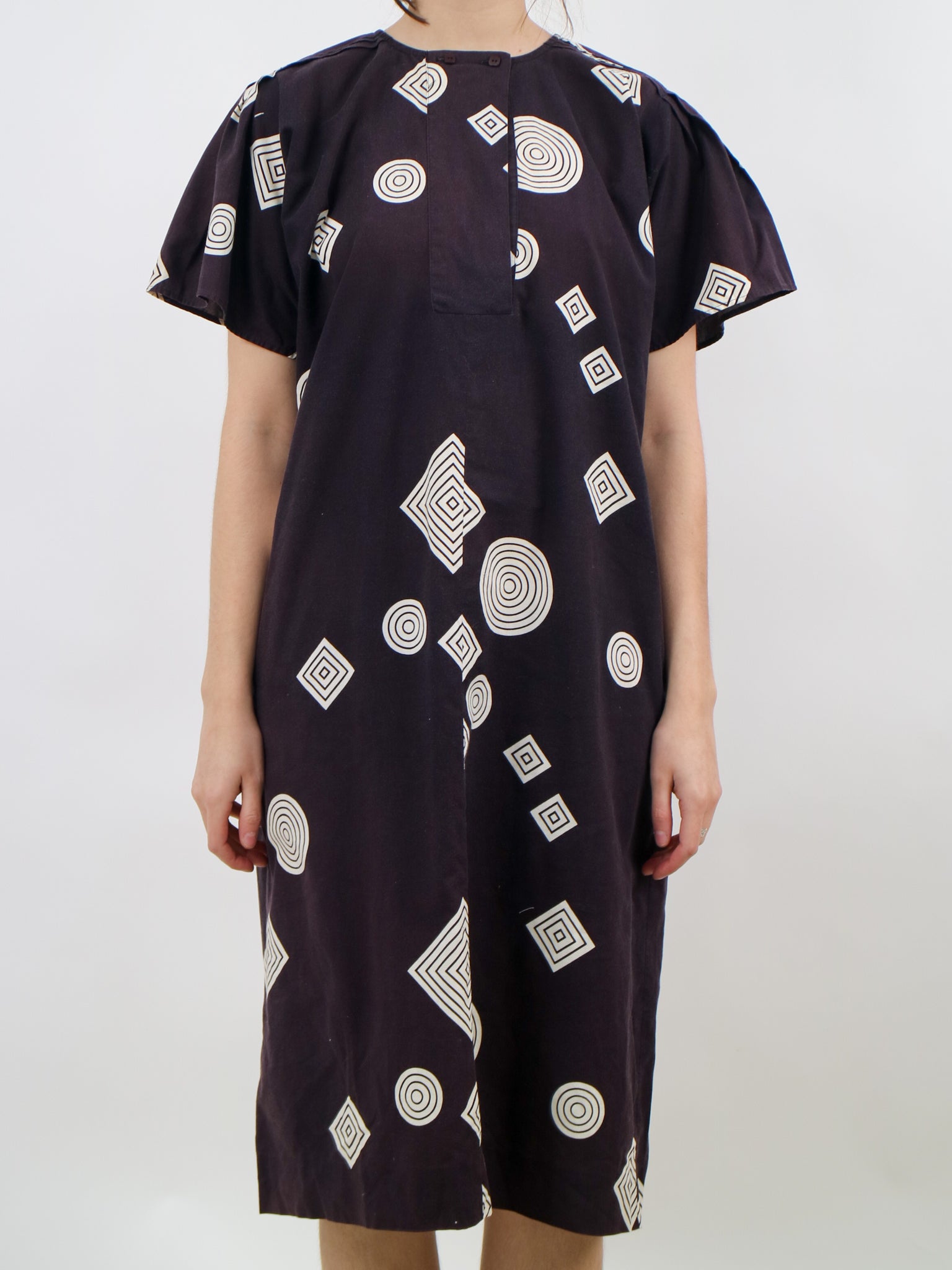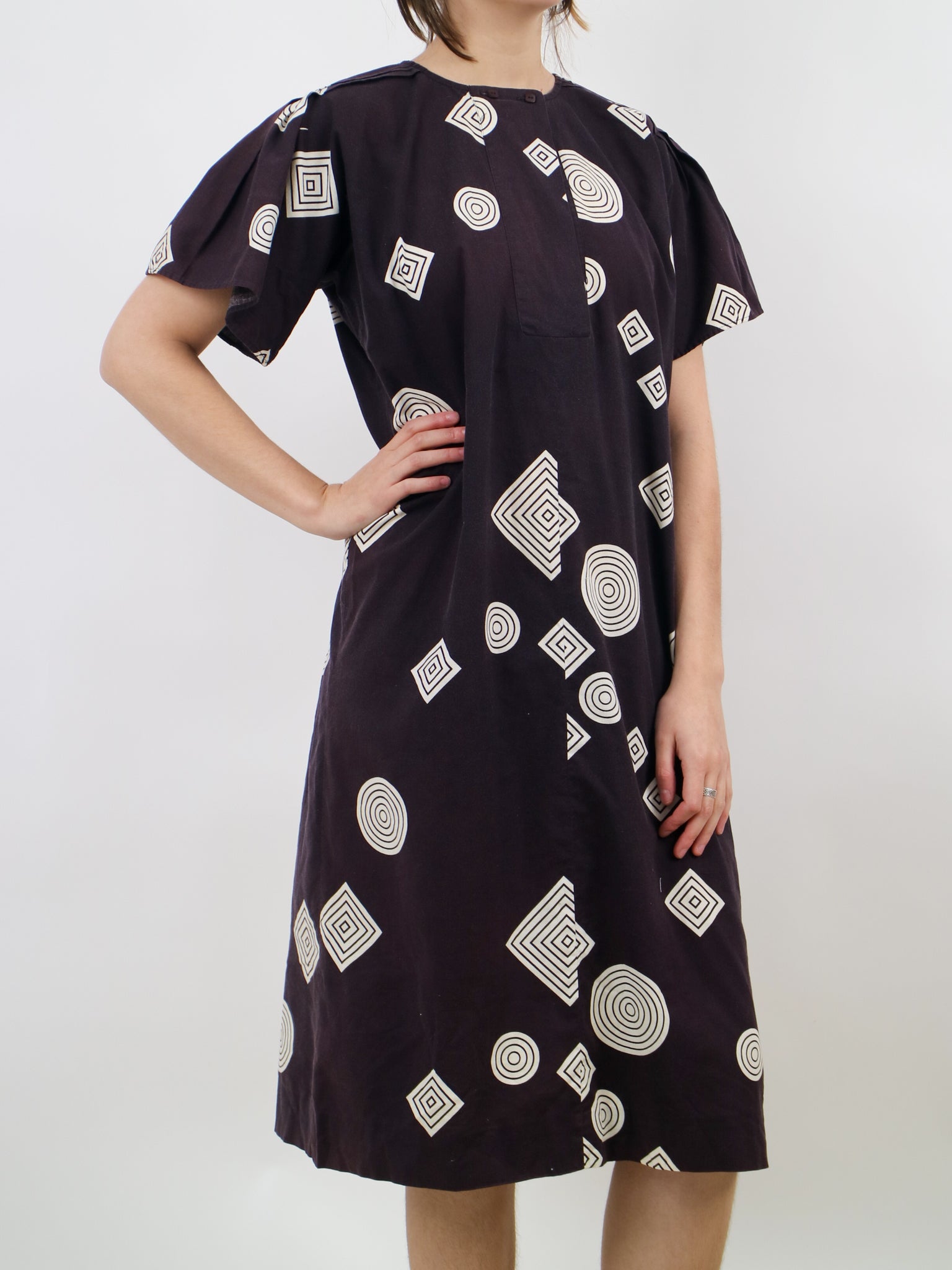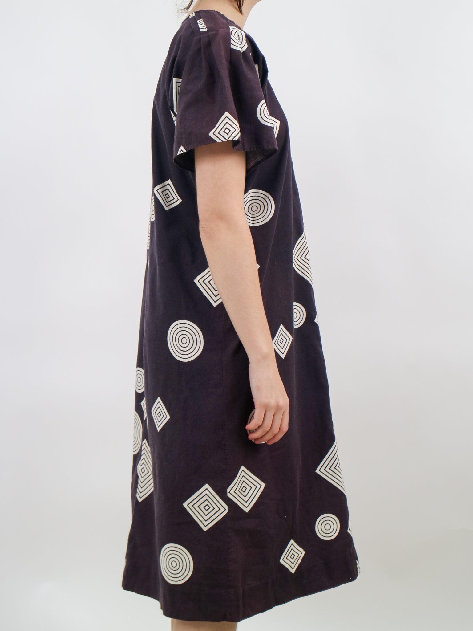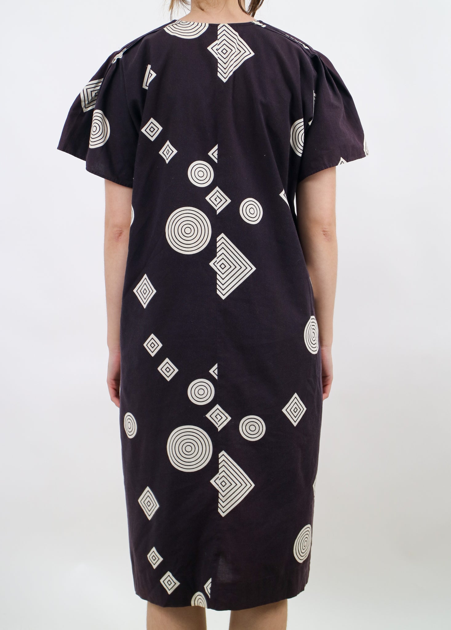 1970s Balmain marimekko style geometric cotton tent dress v316