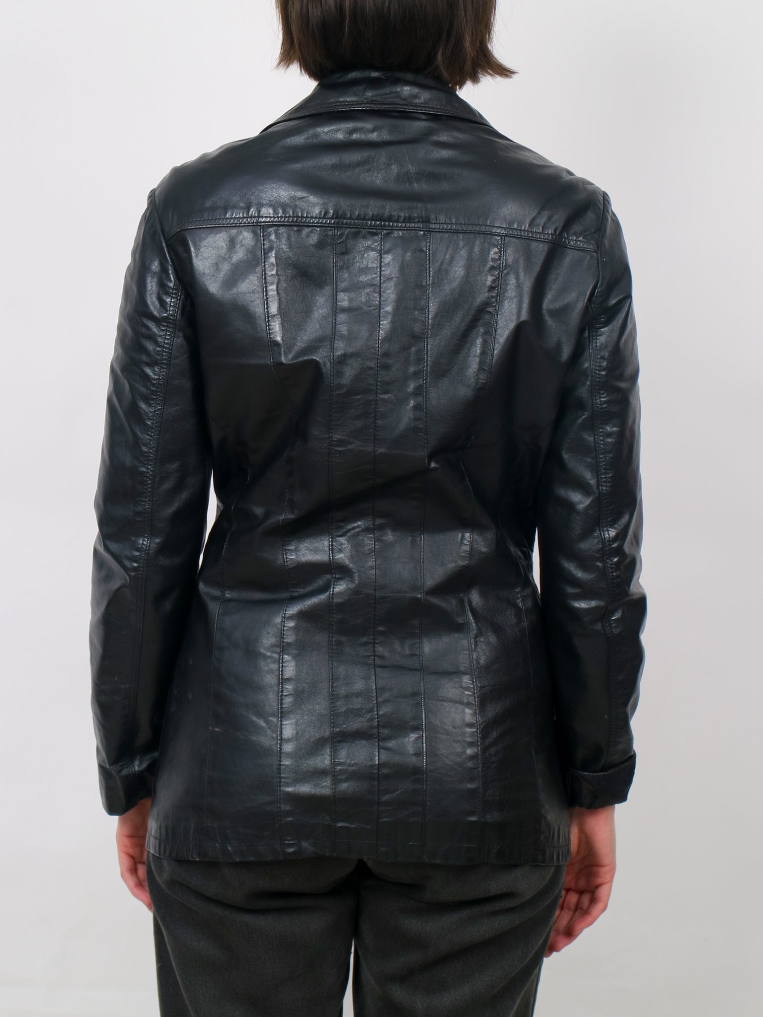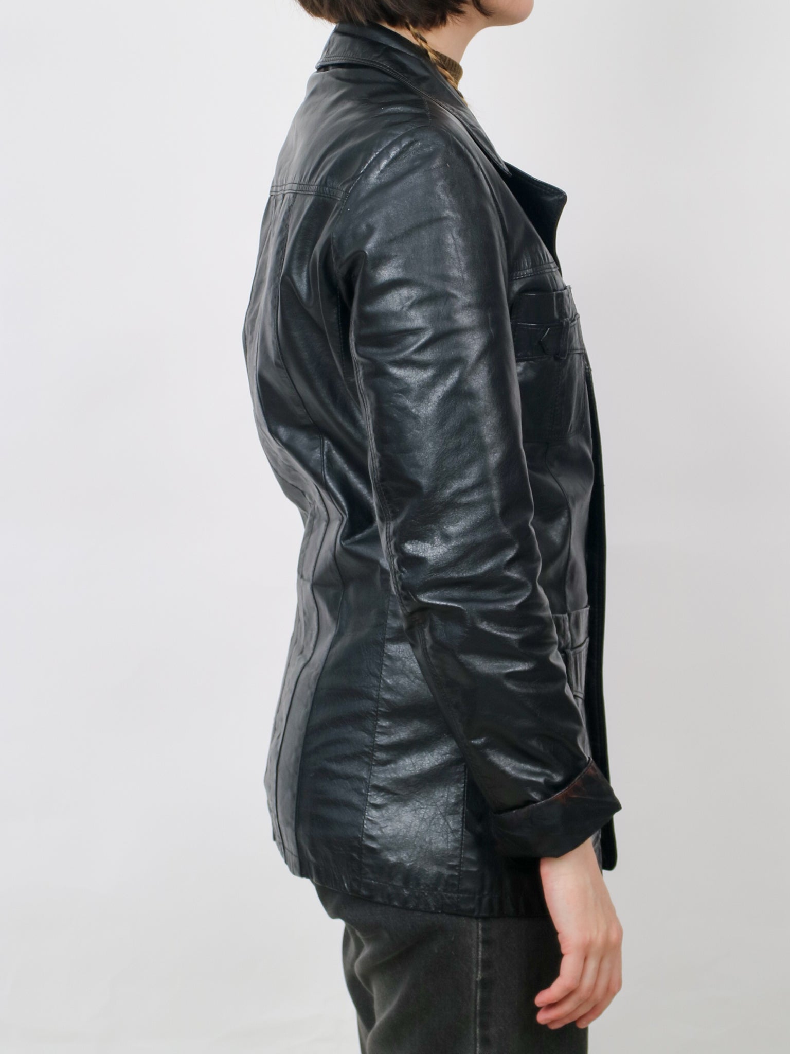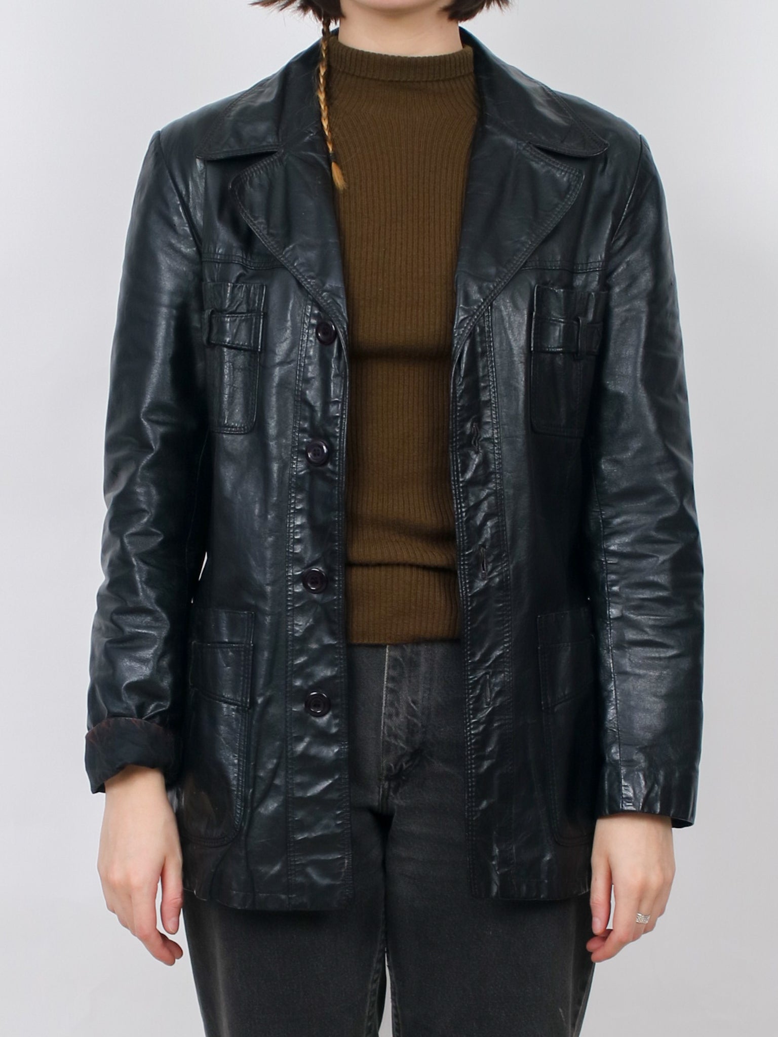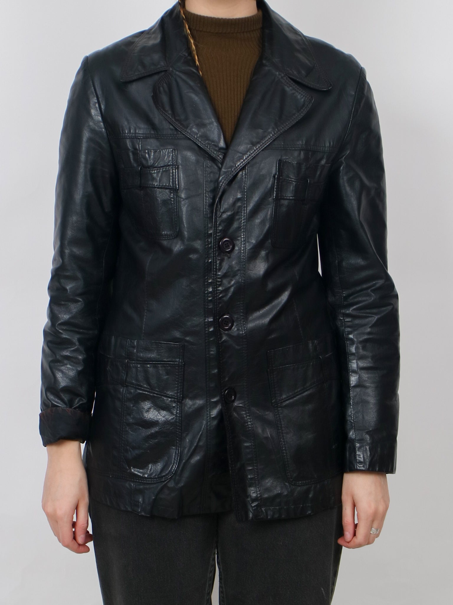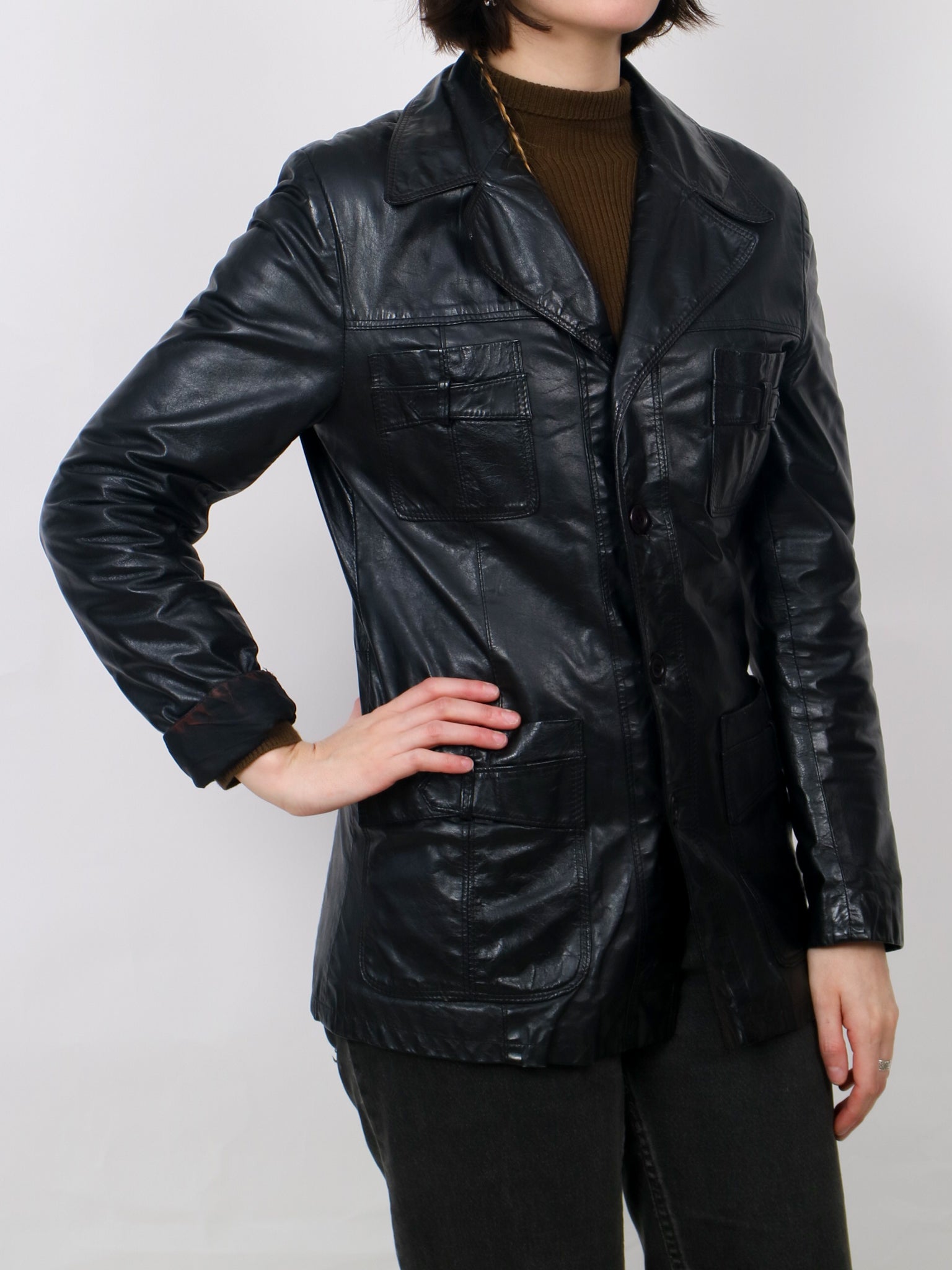 1970s black leather Jacket V366
