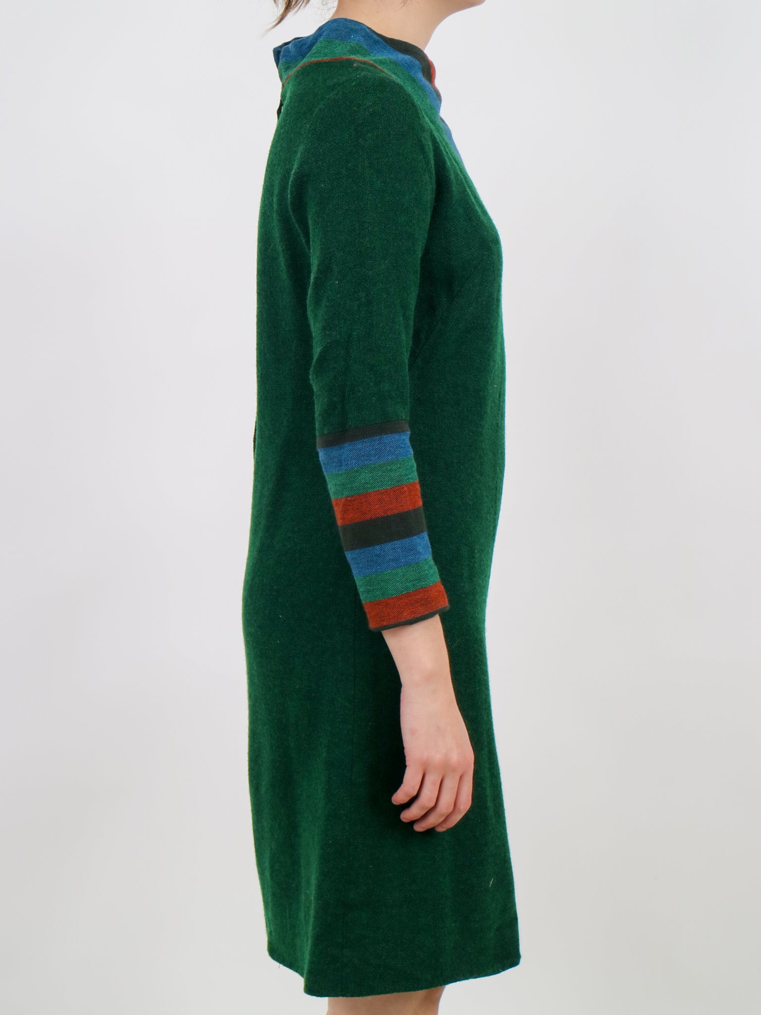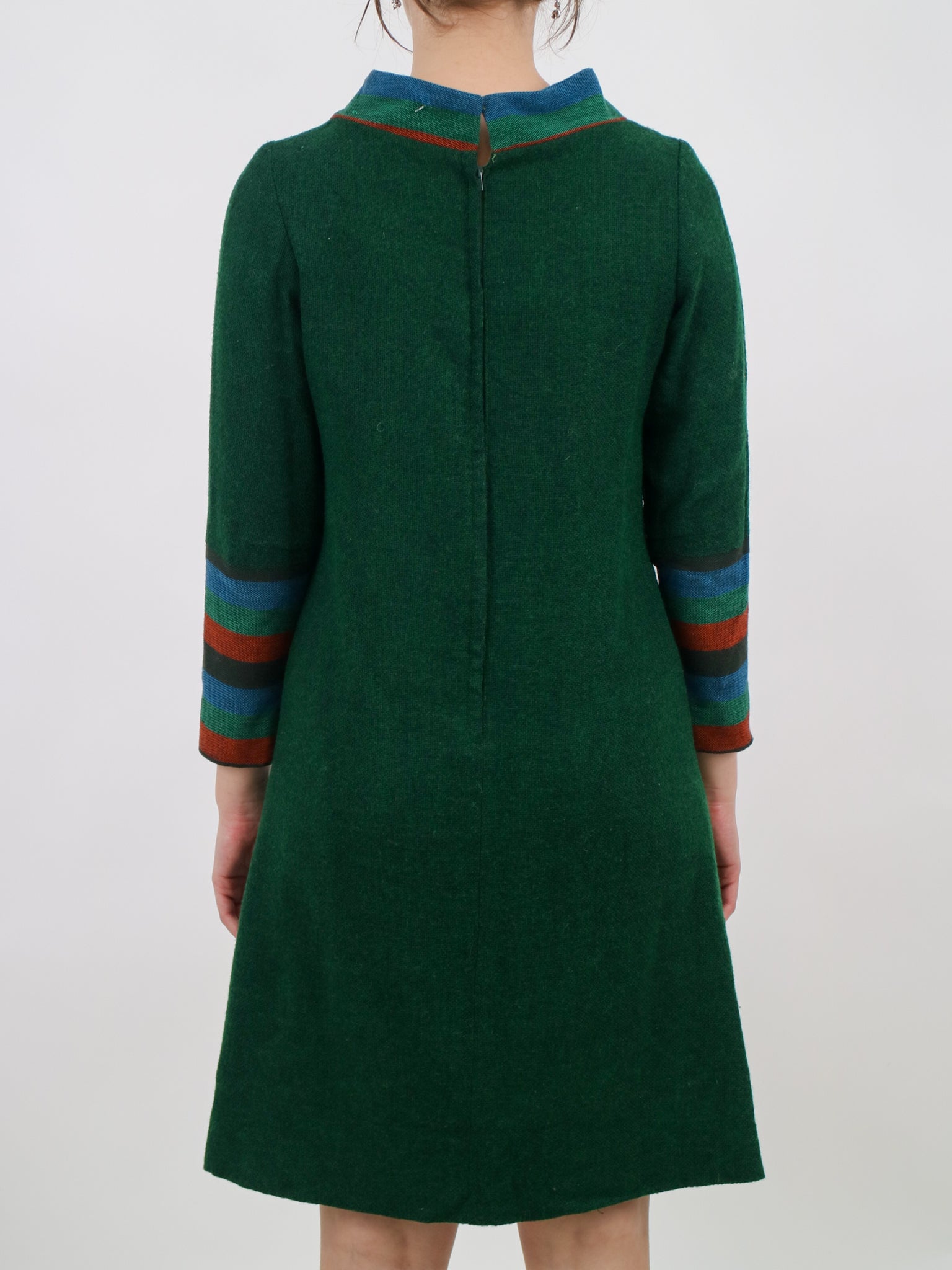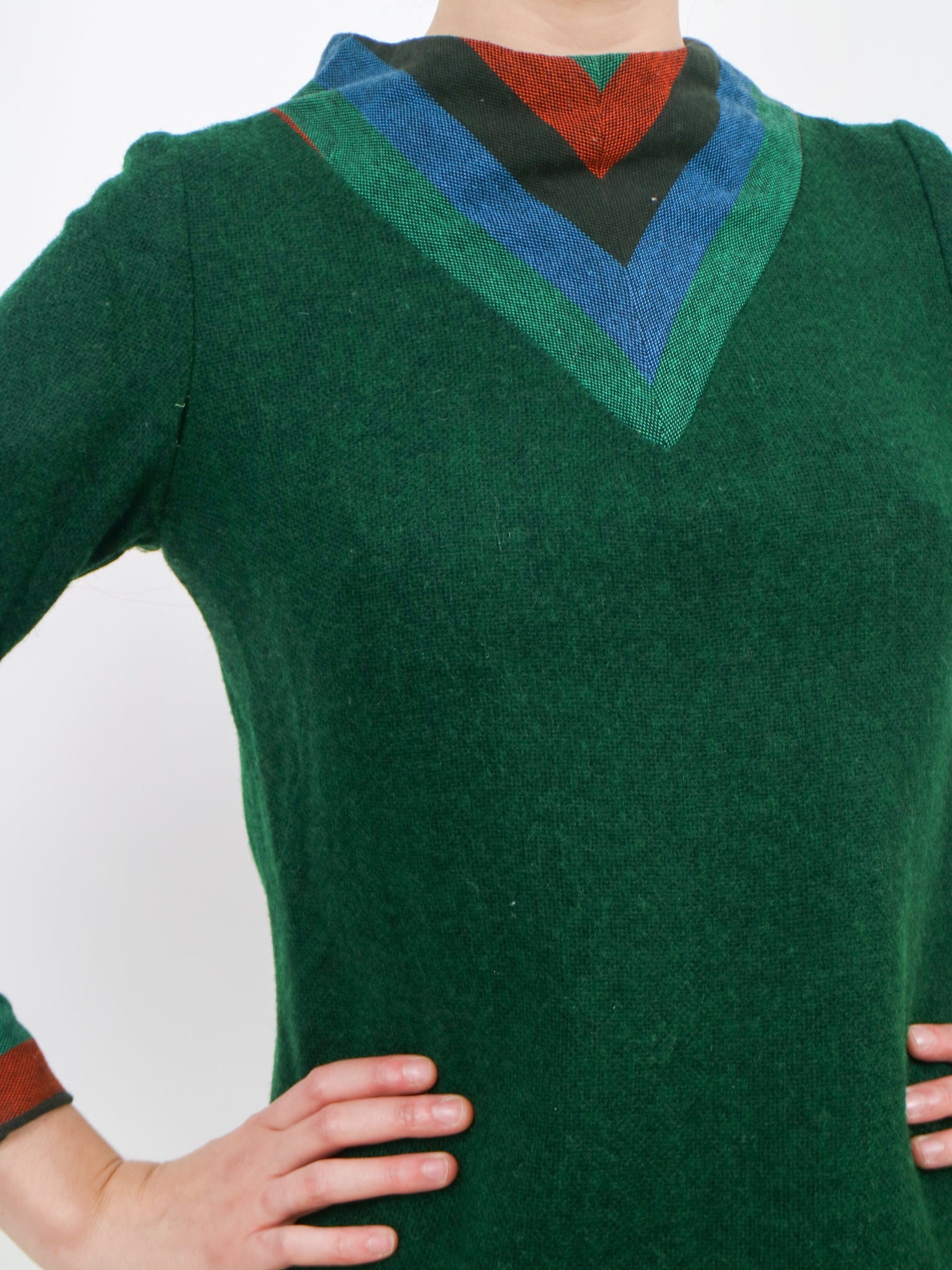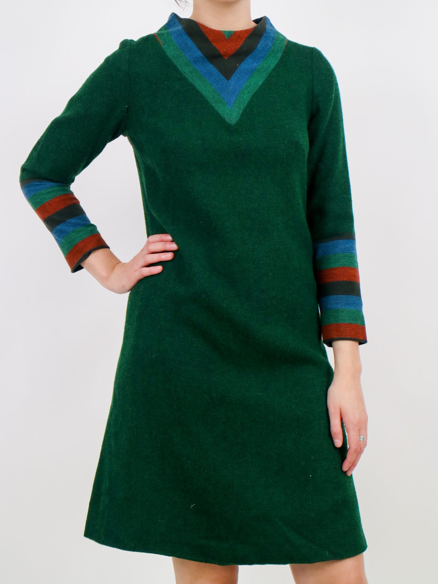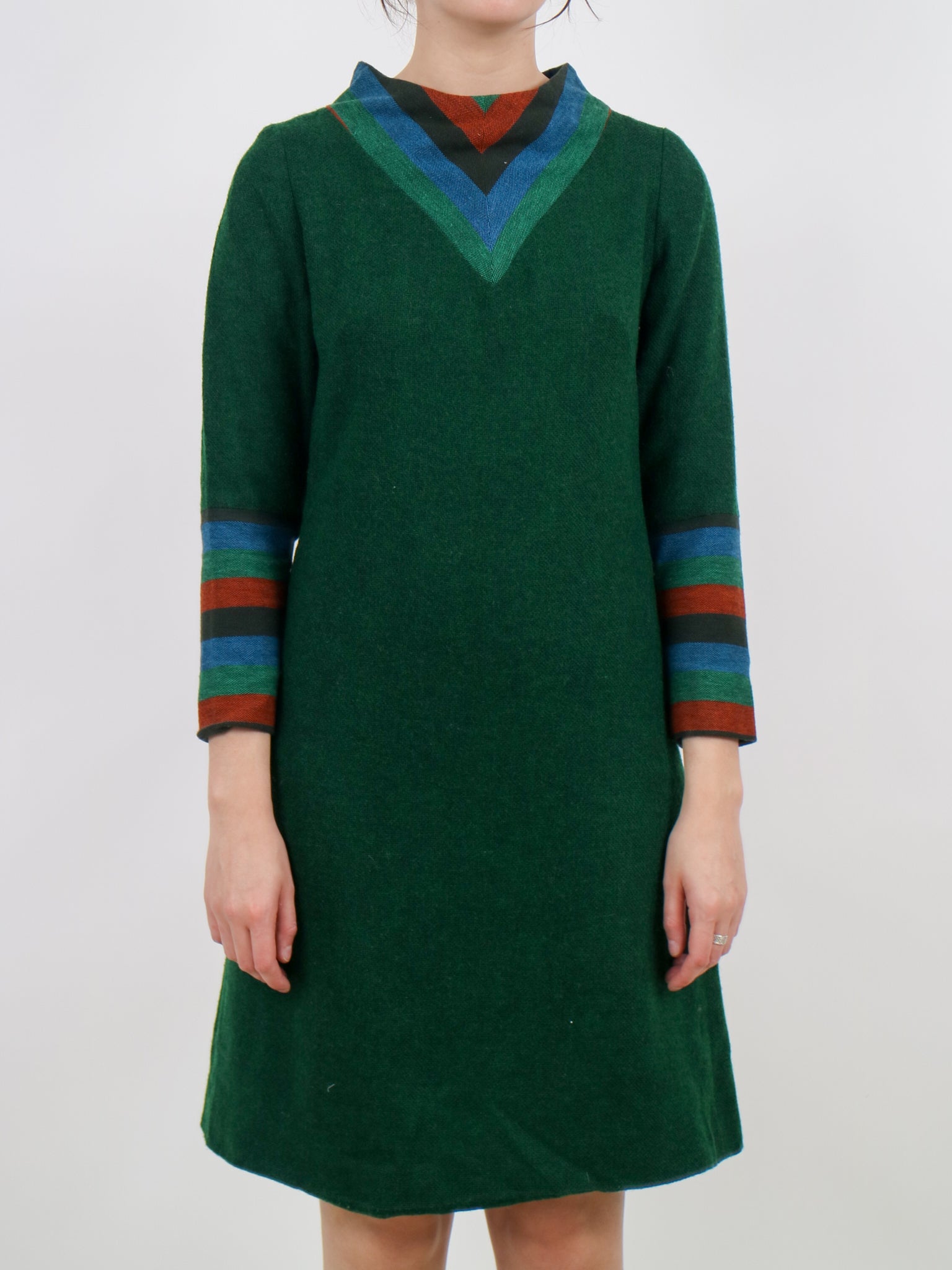 1960s green blue and orange wool aline space age mod dress v190