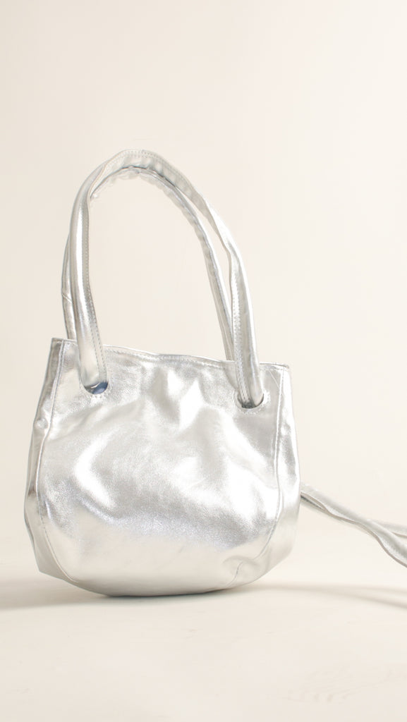 a versatile leather pouch purse that can be worn over the shoulder or crossbody by adjusting the knot and pulling the strap straight through. fully lined and complete with an interior pocket, she's unassumingly roomy thanks to her cubic construction.