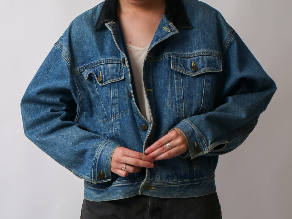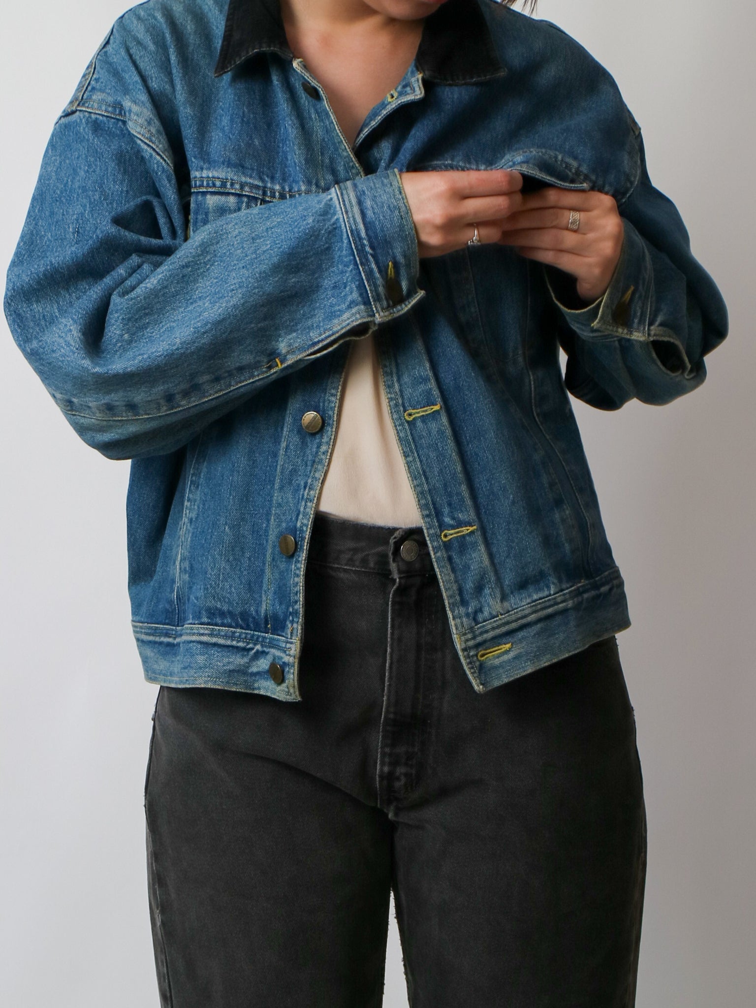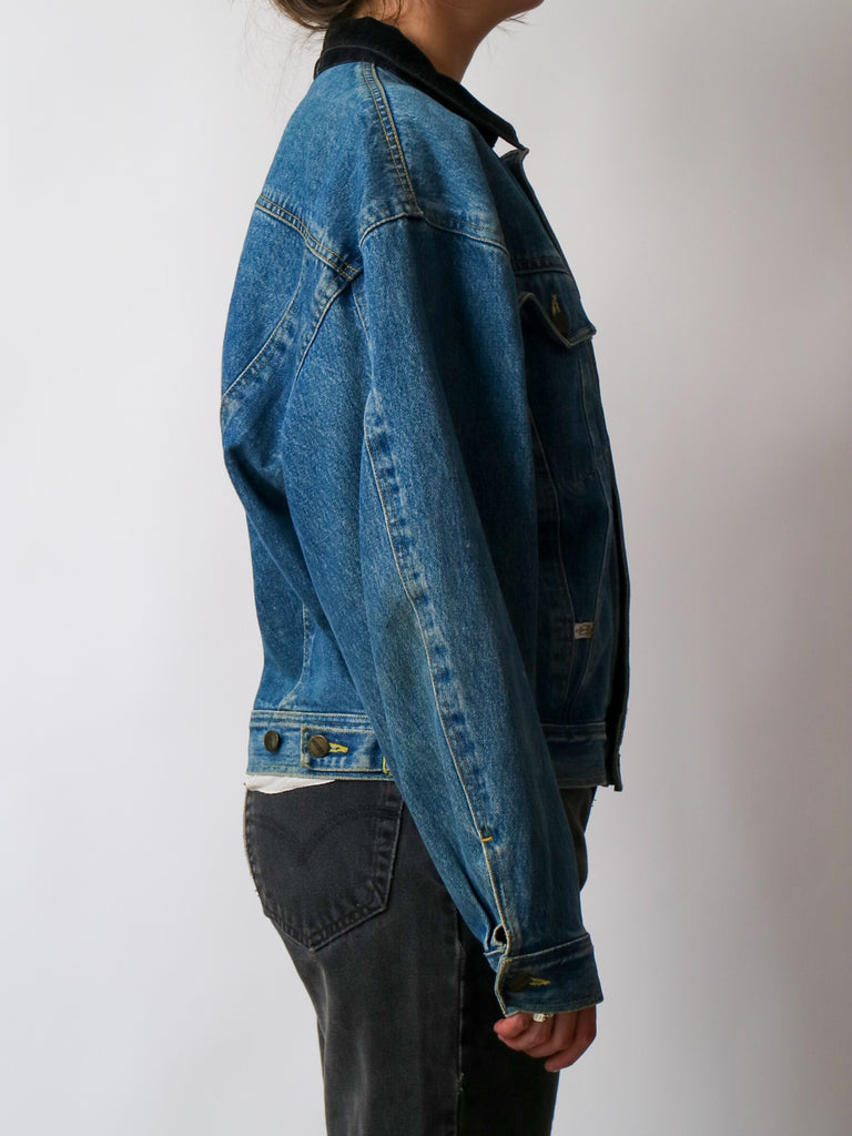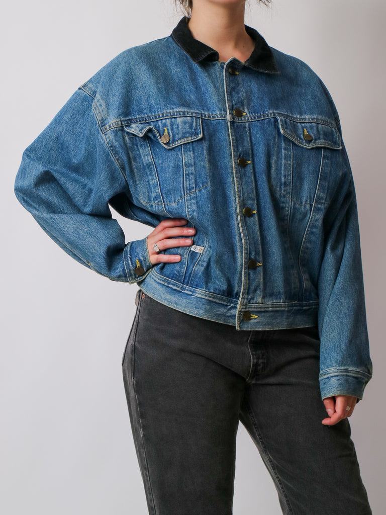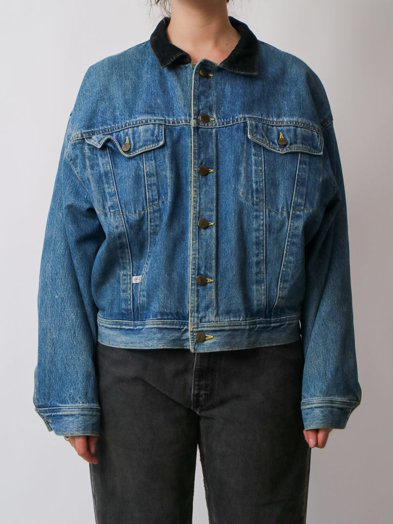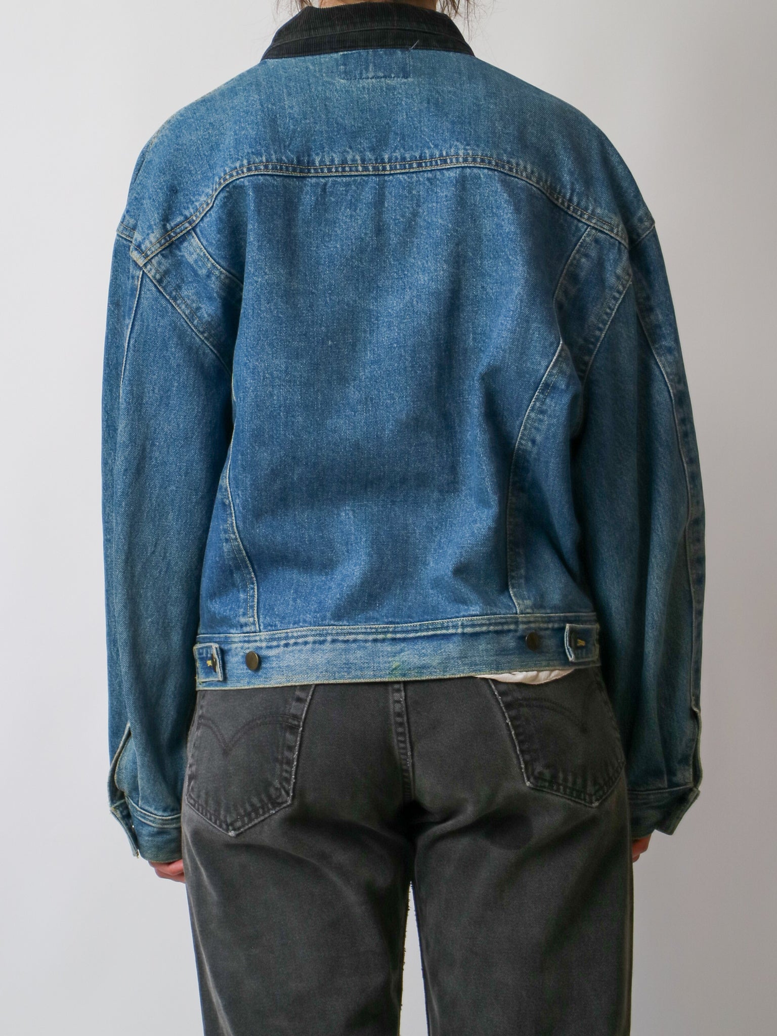 early 90s Marithe Francois Girbaud dark wash denim jacket with corduroy collar