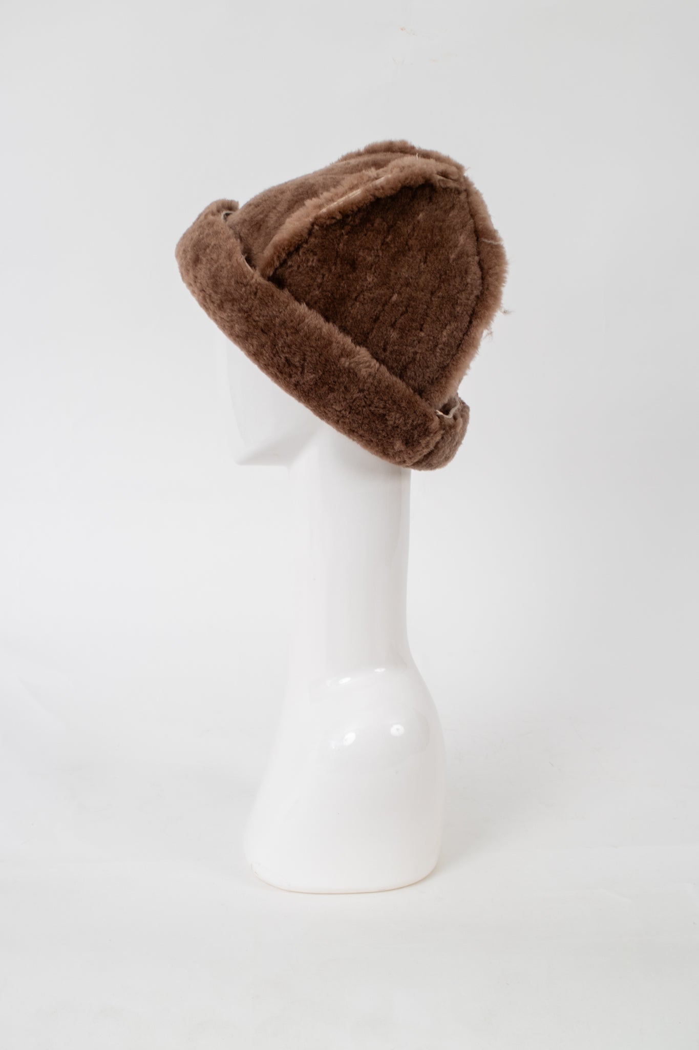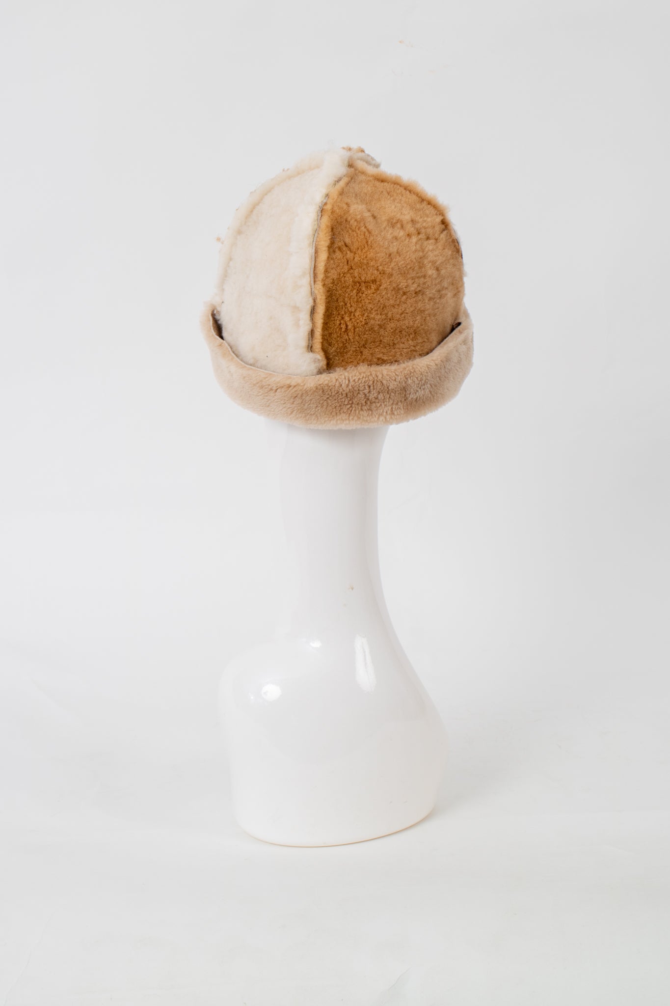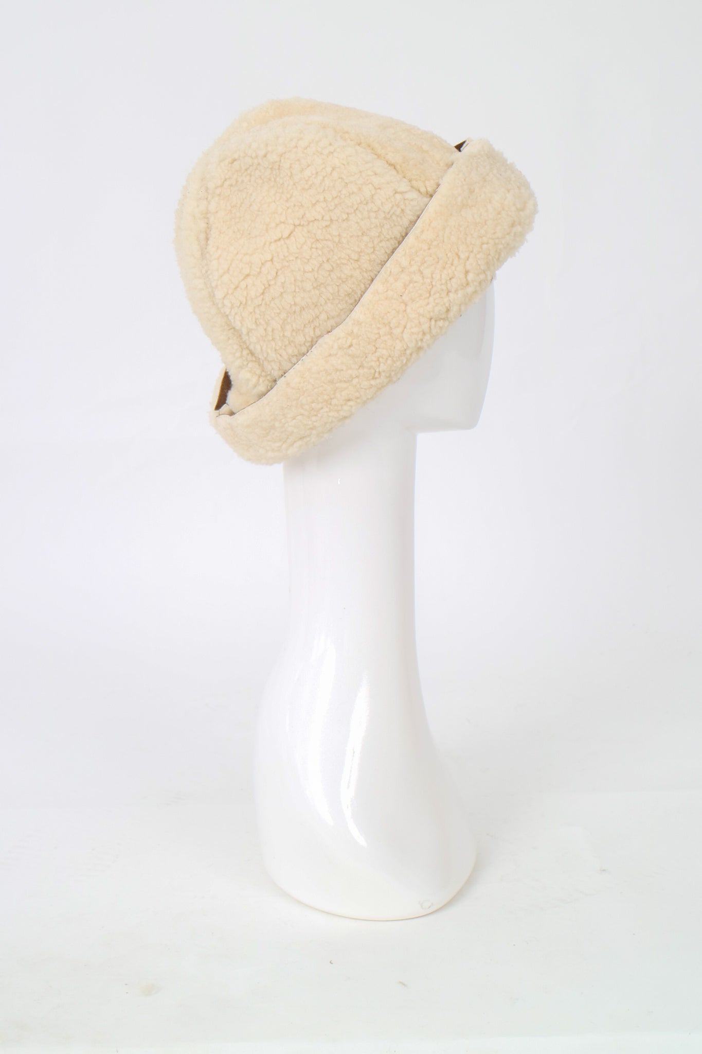 A classic fuzzy hat made from recycled sheepskin, the perfect cozy accessory for the winter!