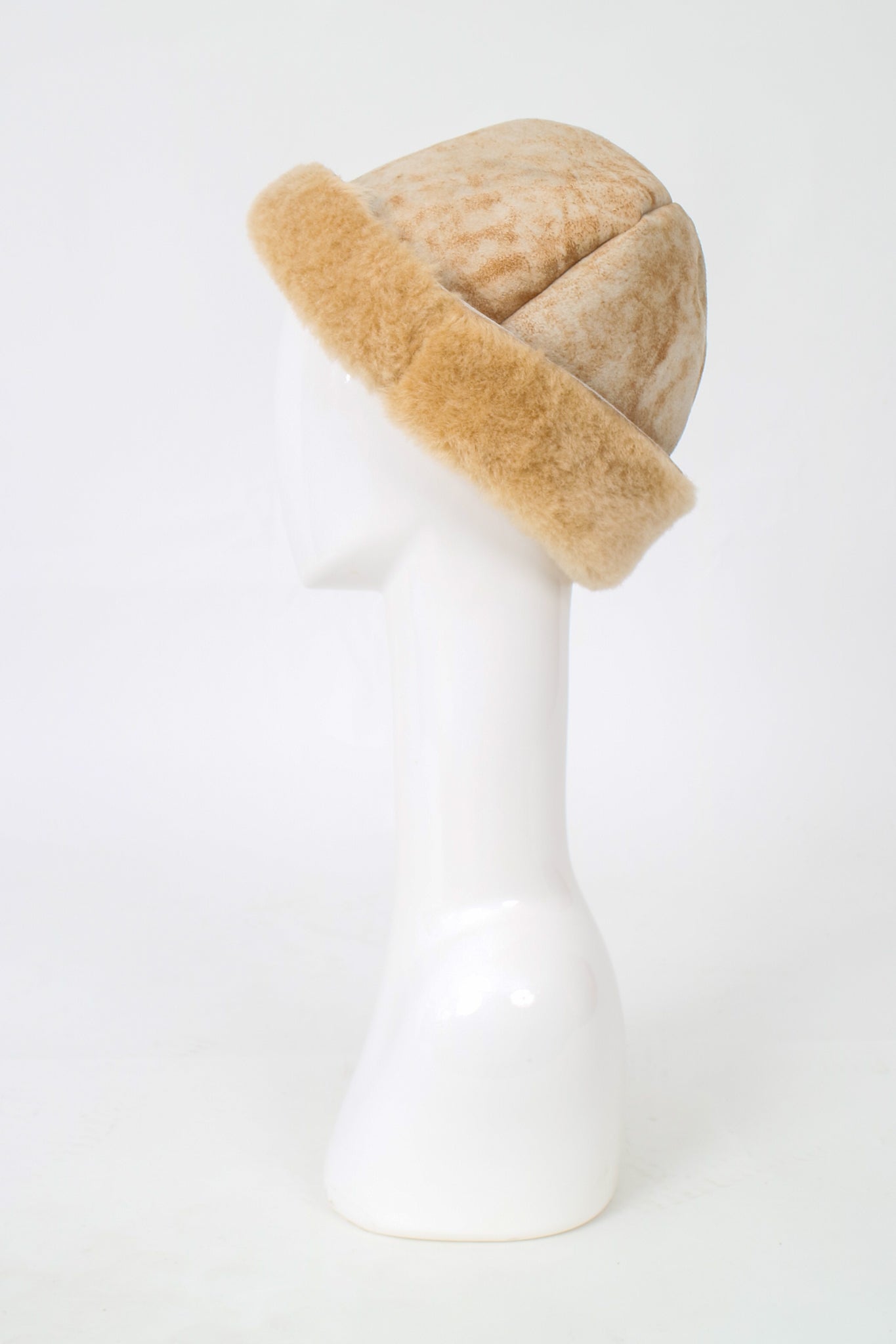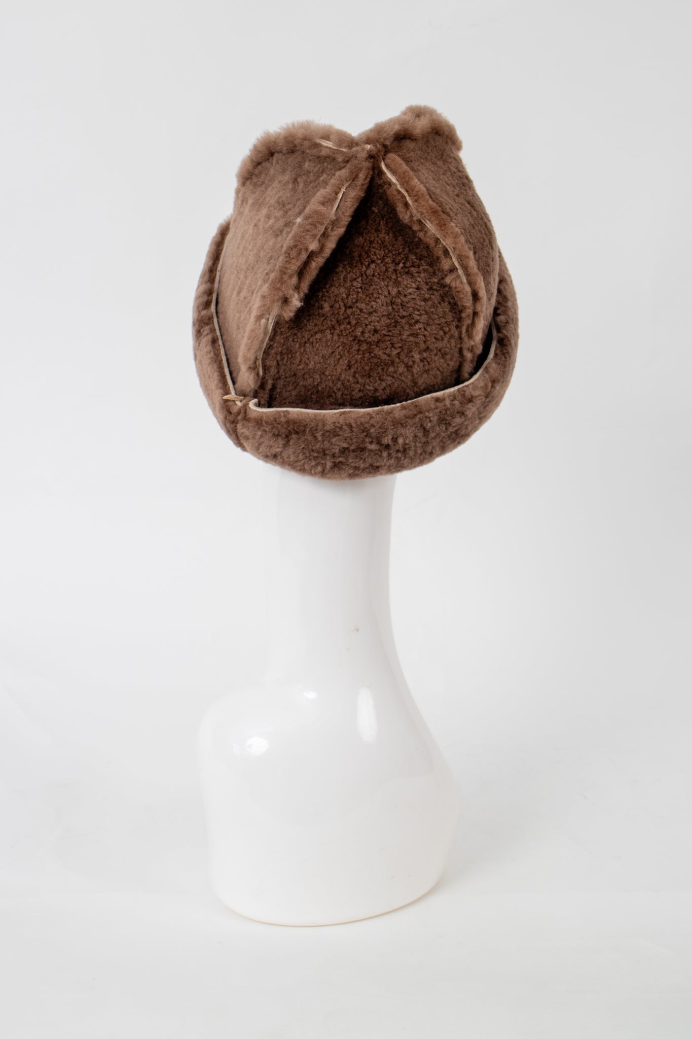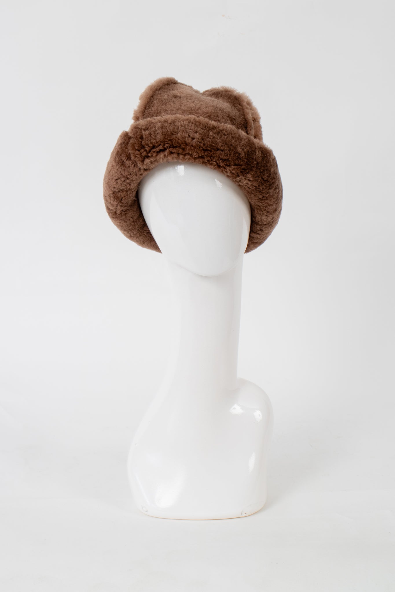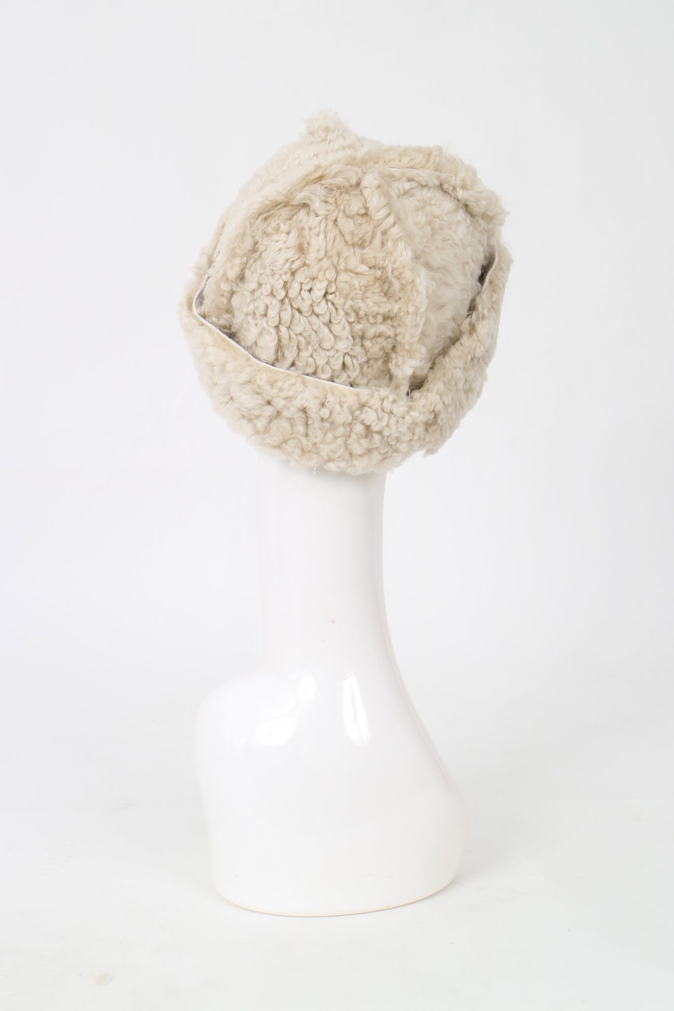 A classic fuzzy hat made from recycled sheepskin, the perfect cozy accessory for the winter!