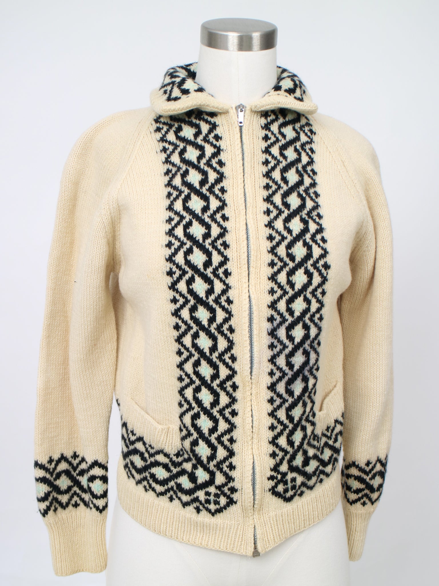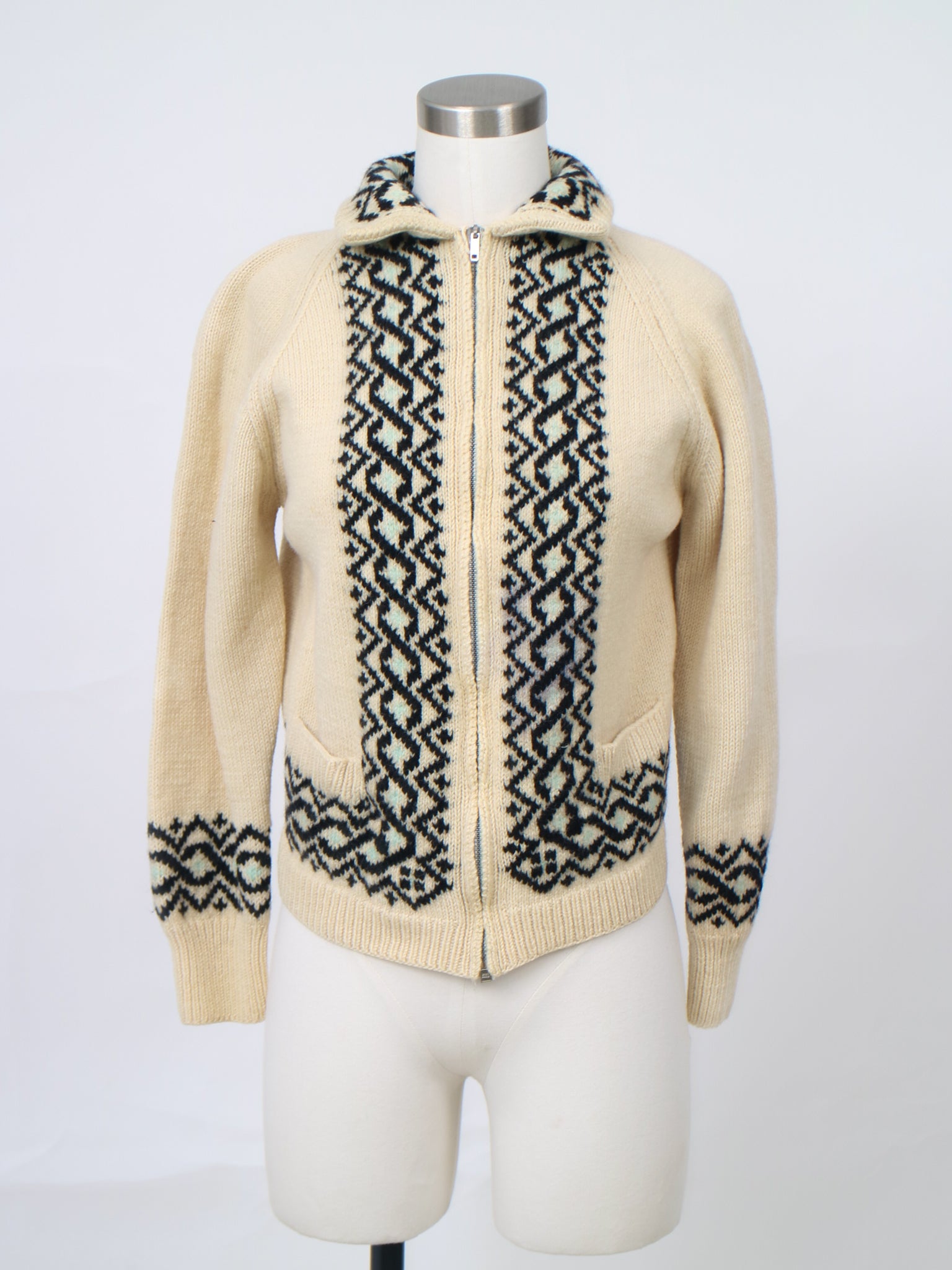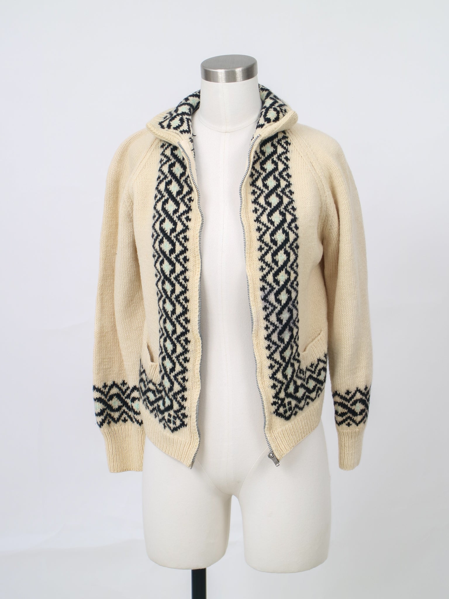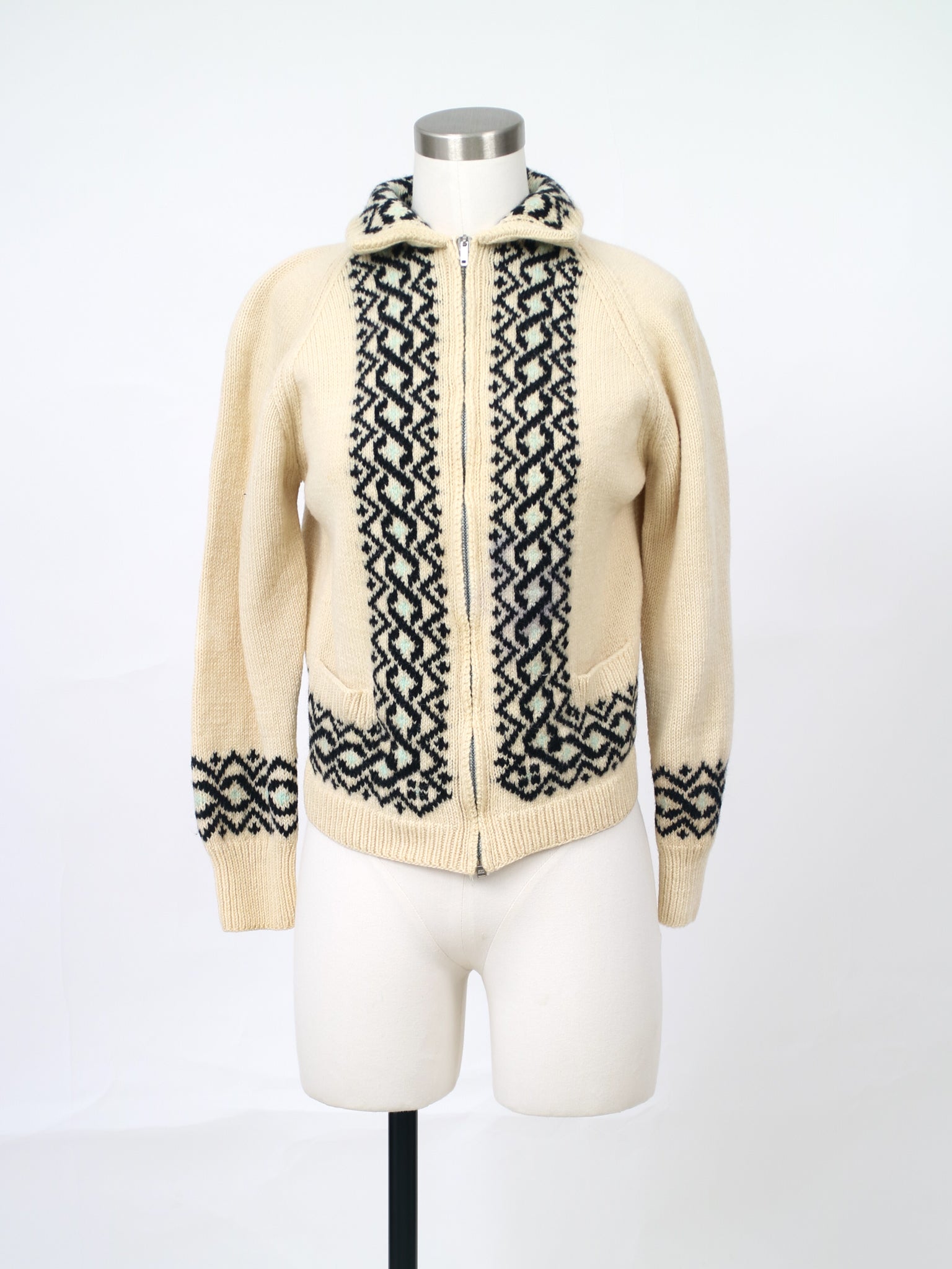 1960s front zip wool knit cardigan with diamond details by l'alpina made in Italy v359