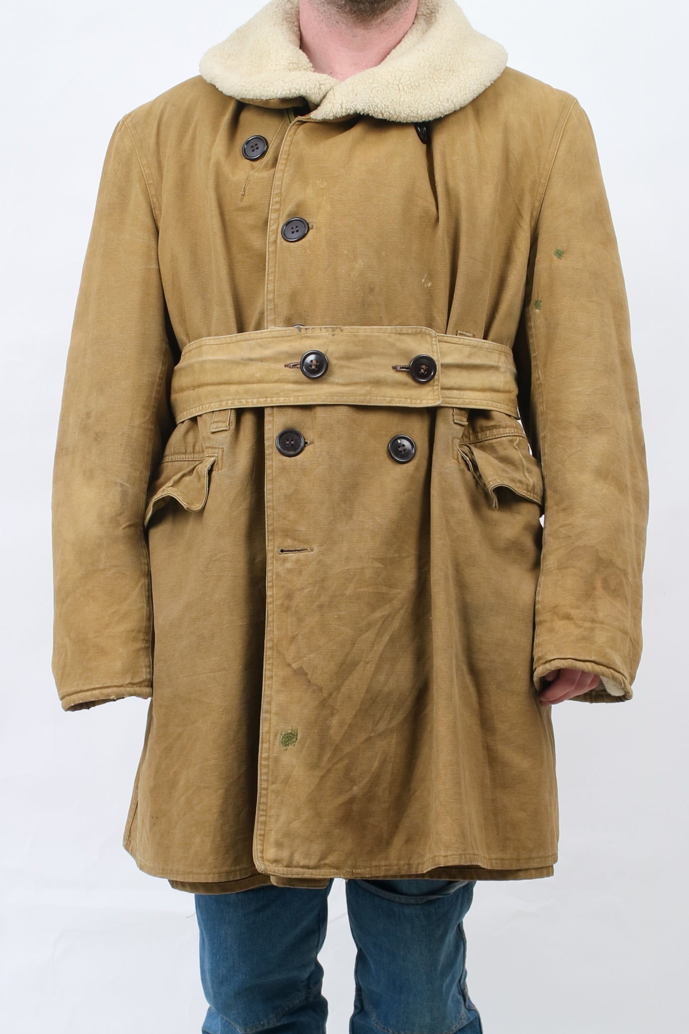 1940s ww2 military jeep canvas coat with sheepskin lining and collar V328