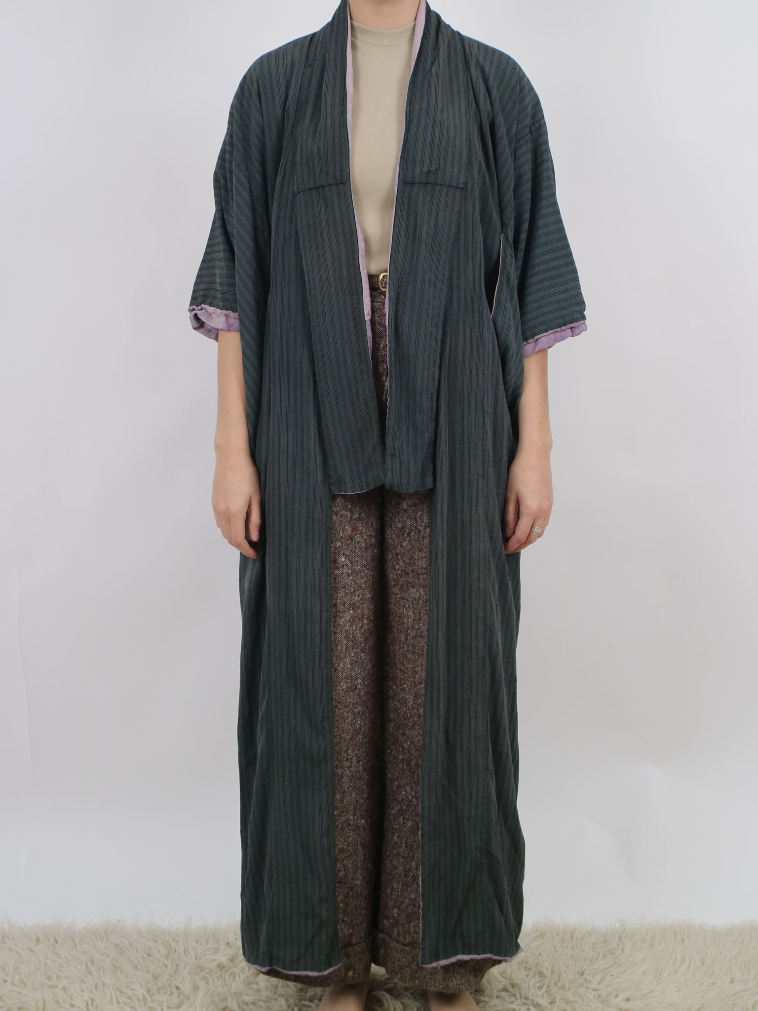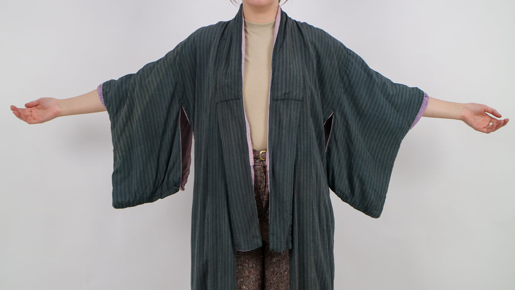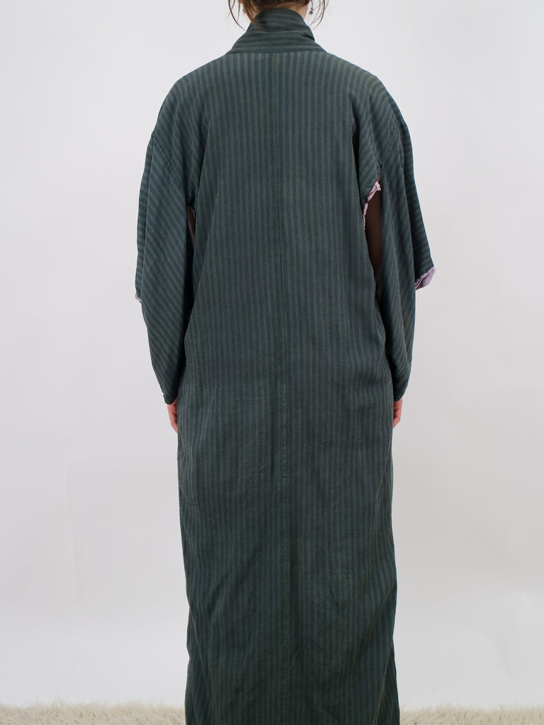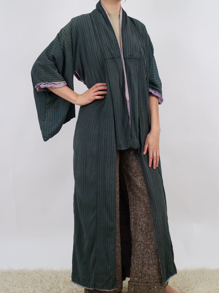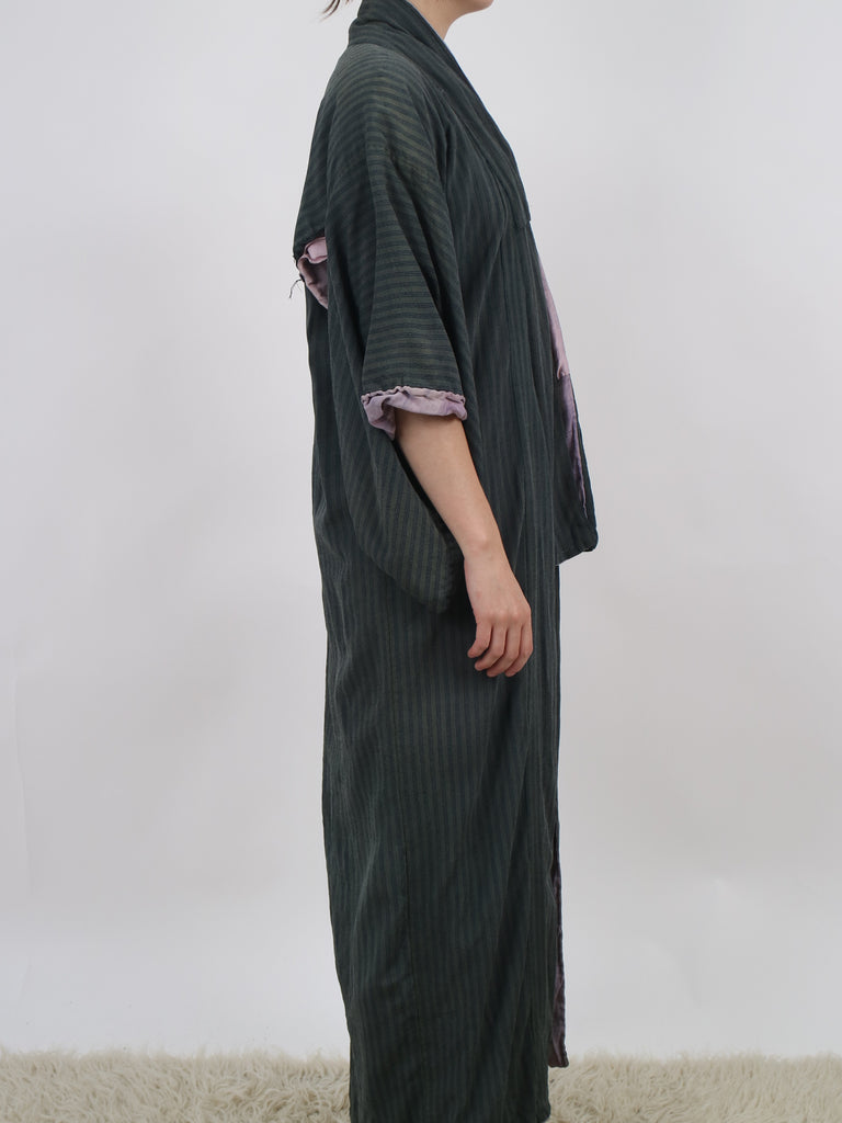 Older striped dark blue silk kimono V192