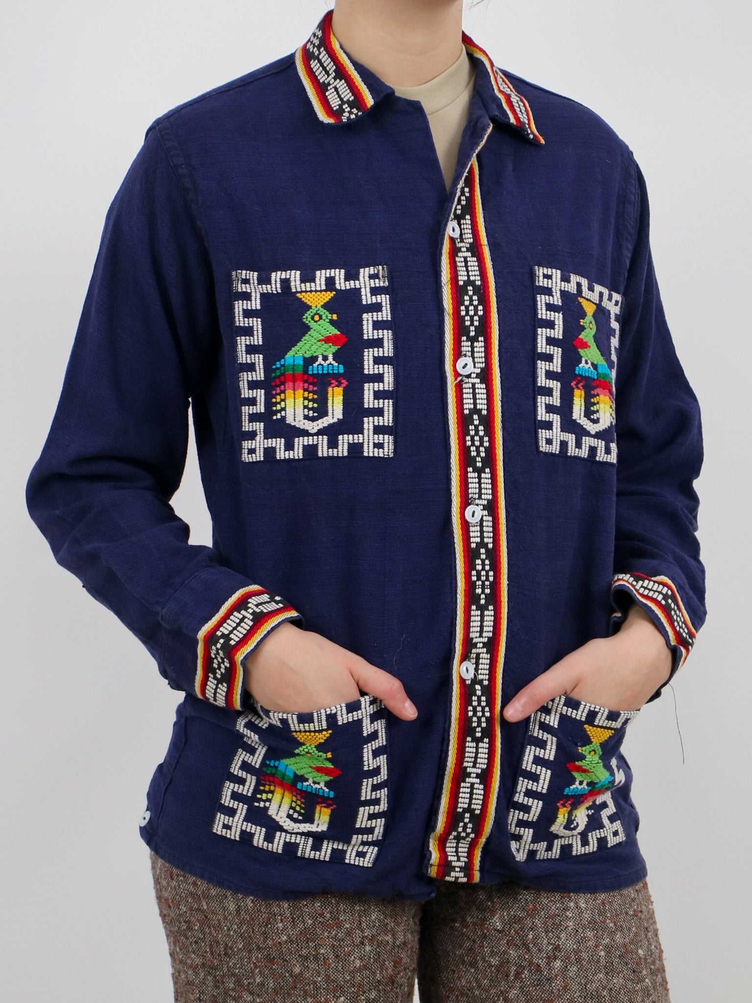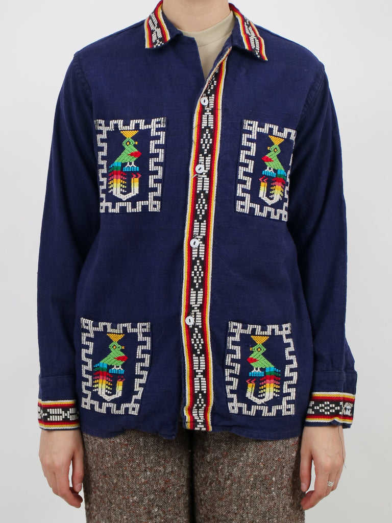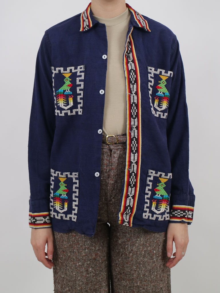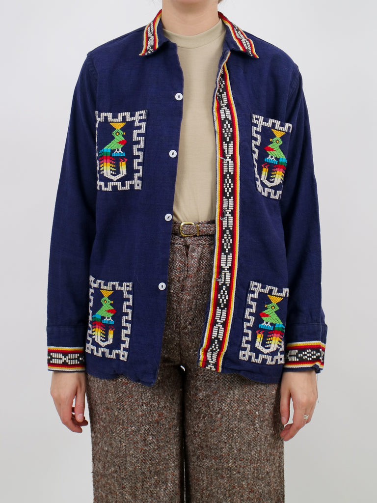 1970s guatemalan woven details quetzal bird traditional jacket V282