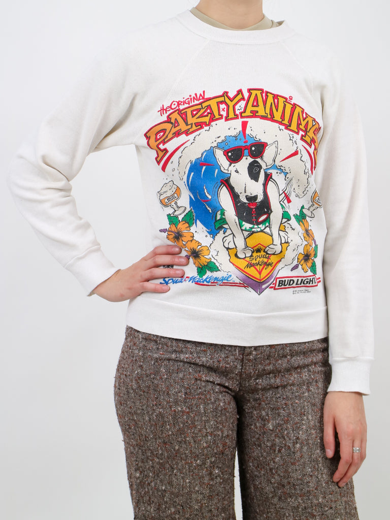 1980s budweiser spuds mckenzie party animal sweatshirt v182