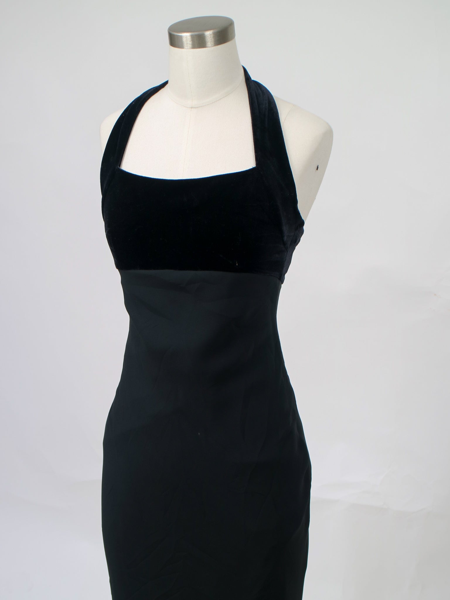 1990s black velvet and chiffon halter neck evening gown v360