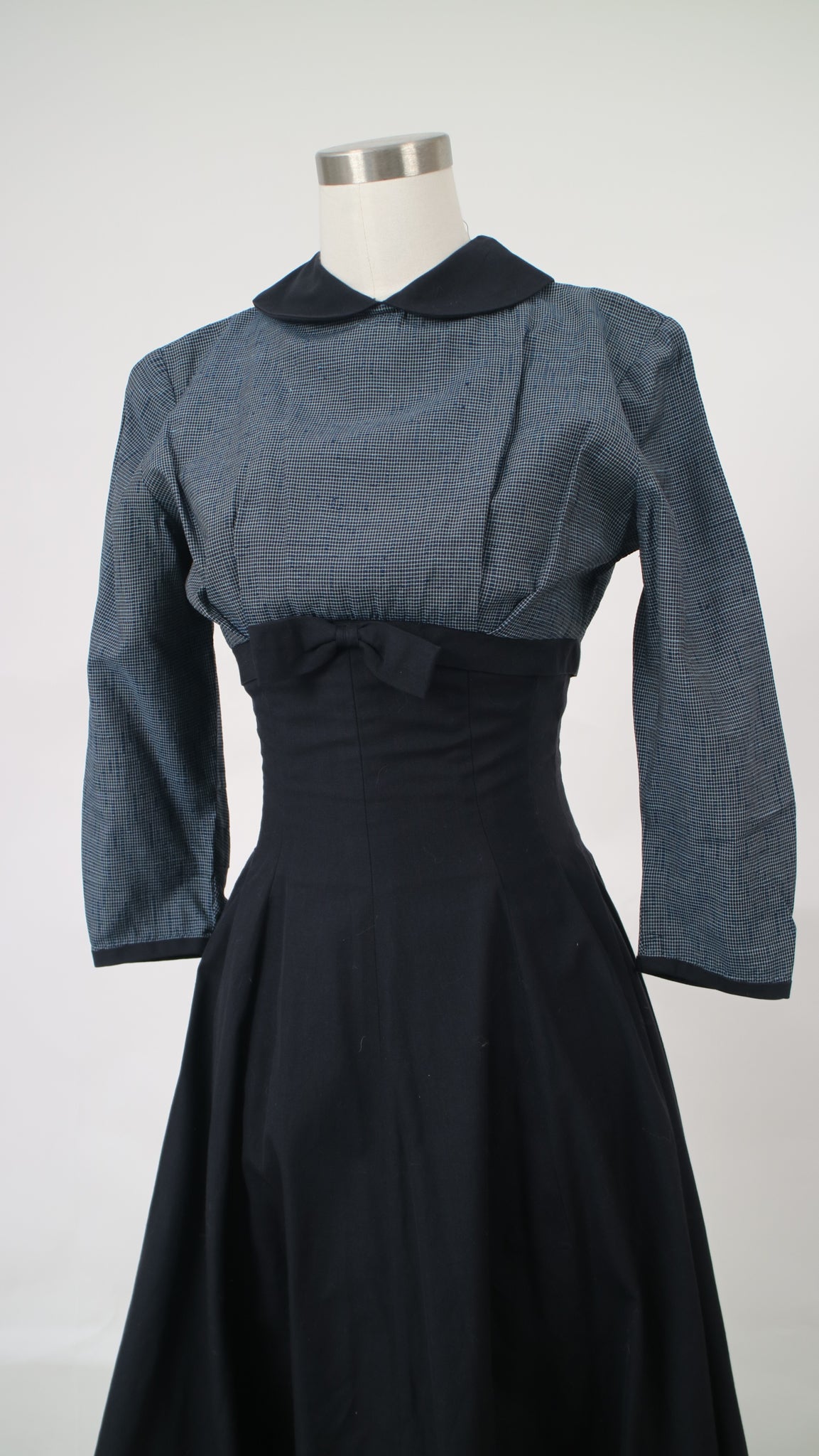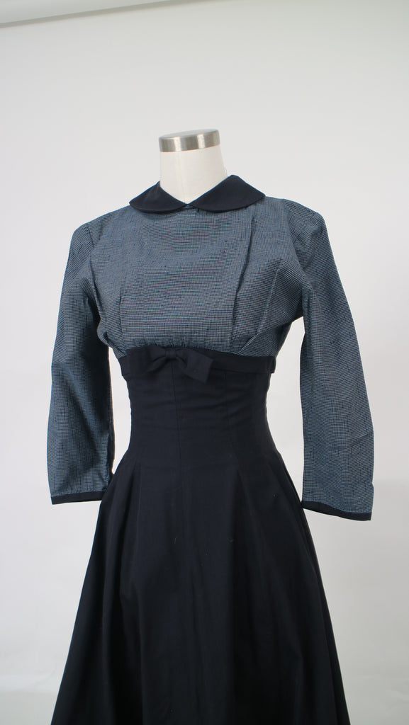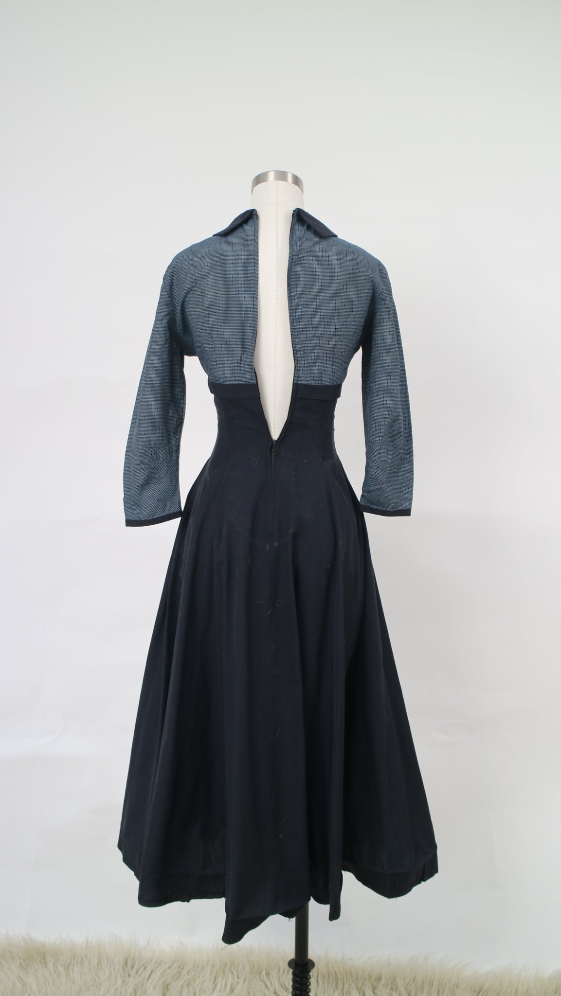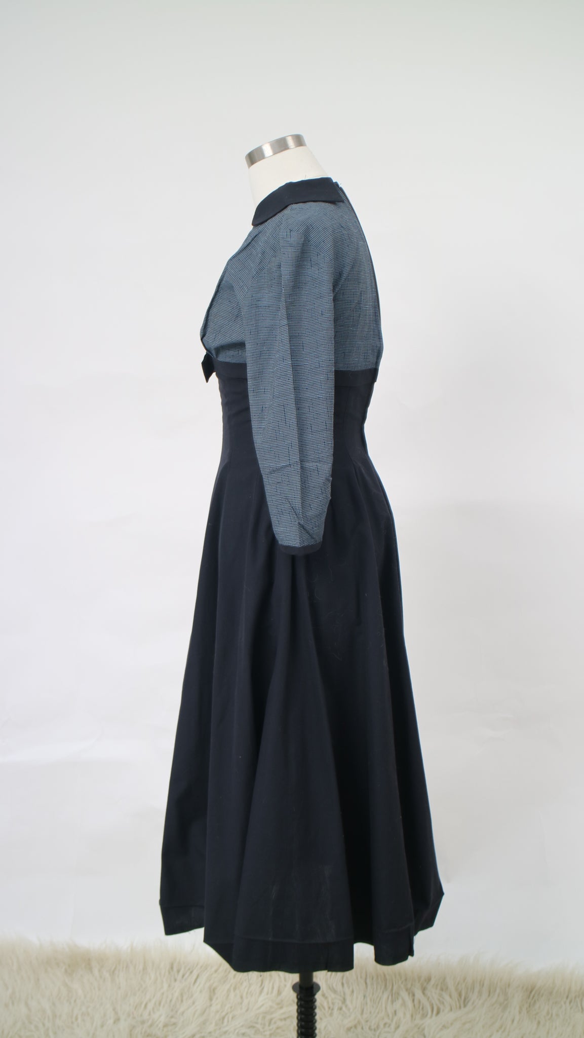 1950s fit and flare navy blue cotton shelf bust dress v335