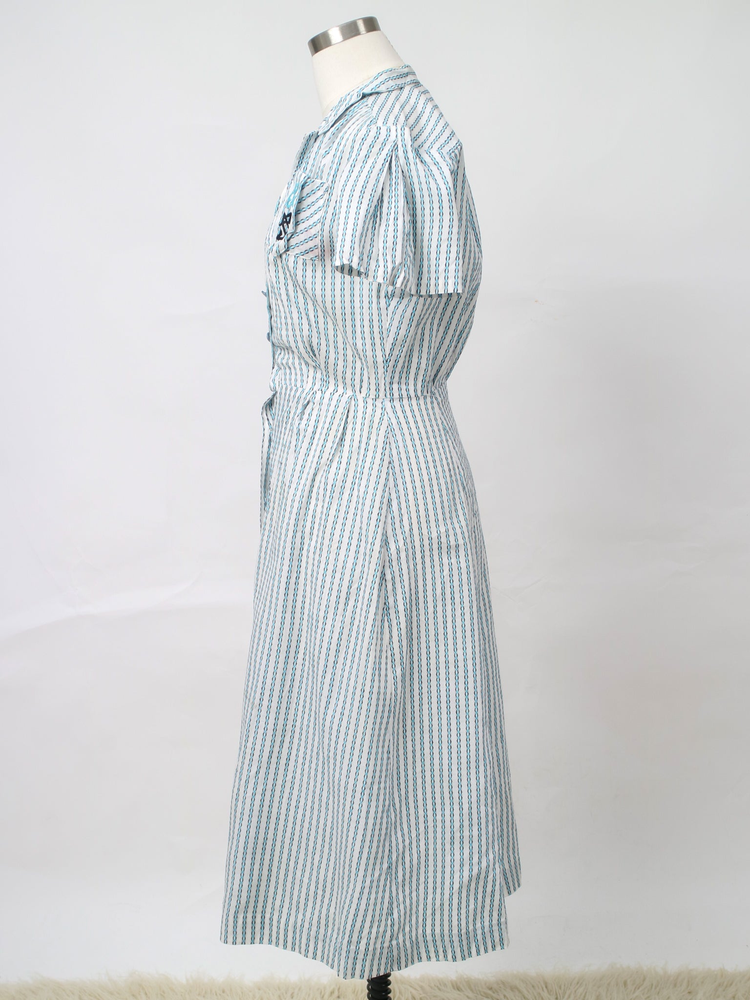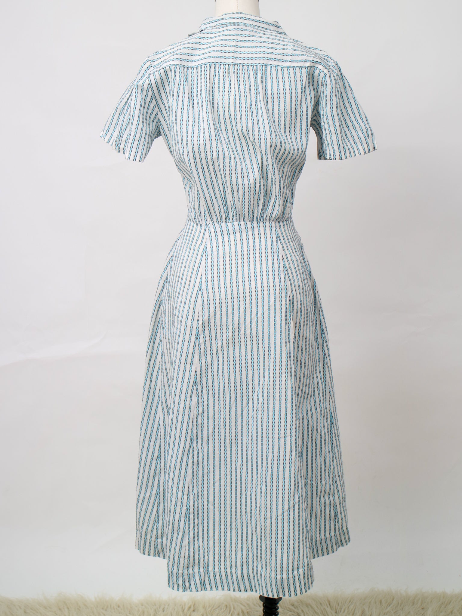 Product details: modern classics white blue and black geometric patterned cotton day dress